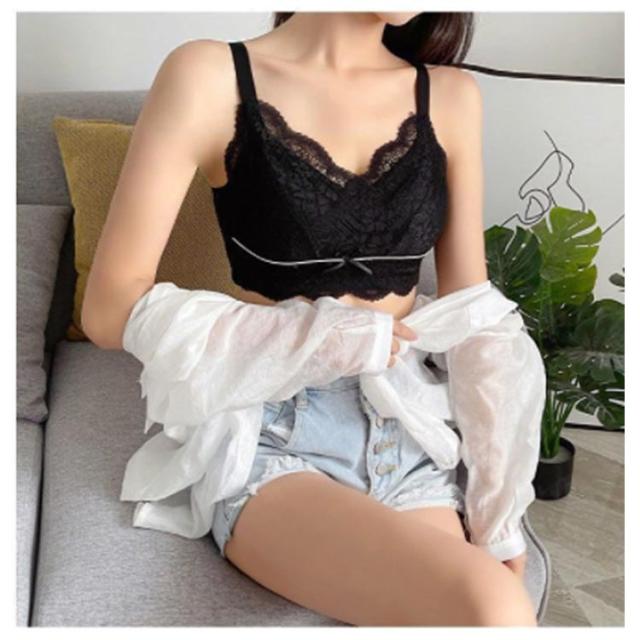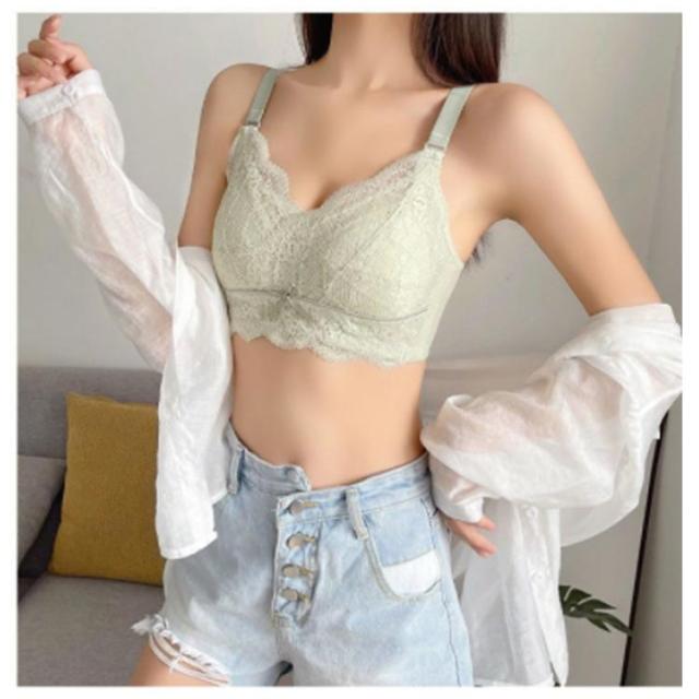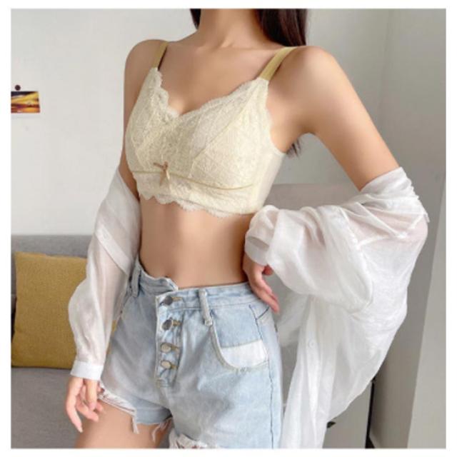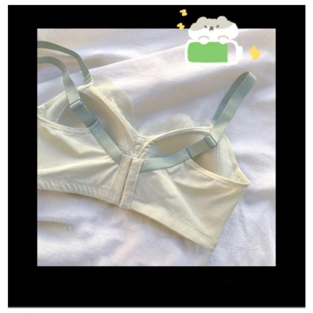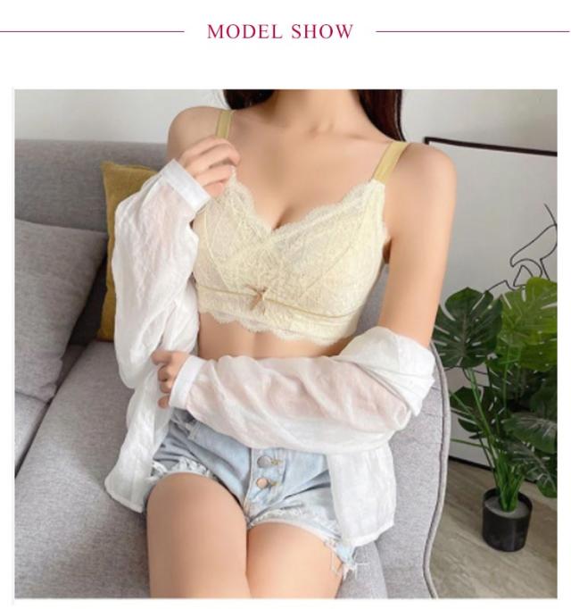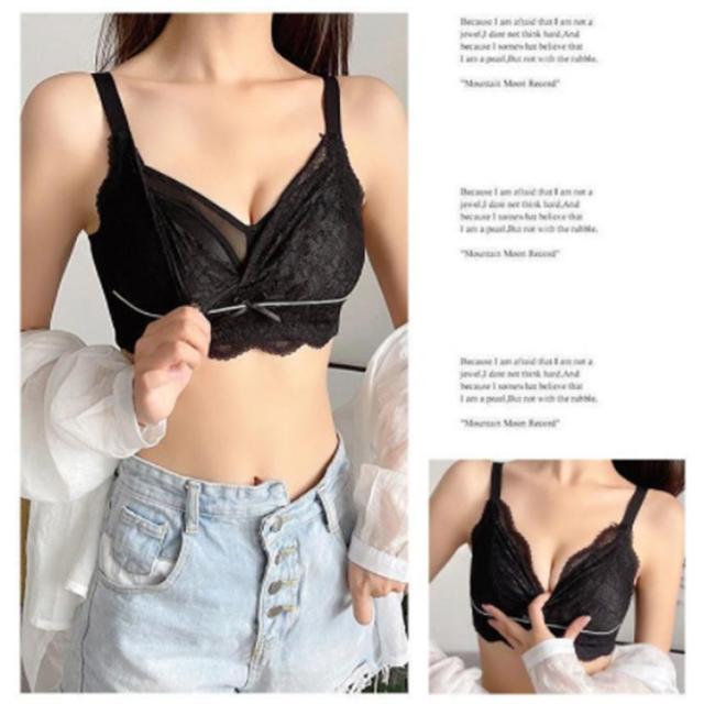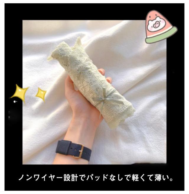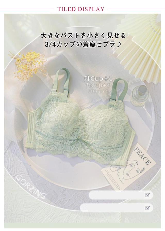 | 大きなバストを小さく見せる3/4カップの着痩せブラ♪ ノンワイヤー設計でパッドなしで軽くて薄い。 上品で可愛らしいレースがポイント! ノンワイヤー?ストレス0!締め付けなく、まるでつけていないような感覚。 | |