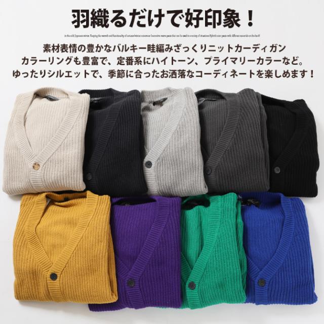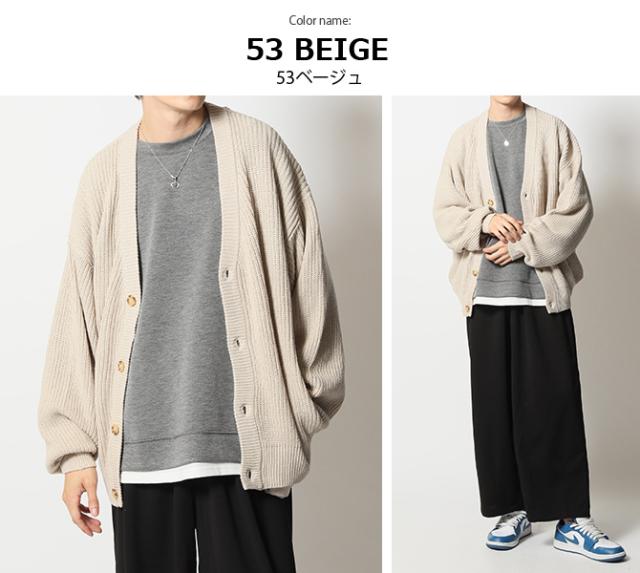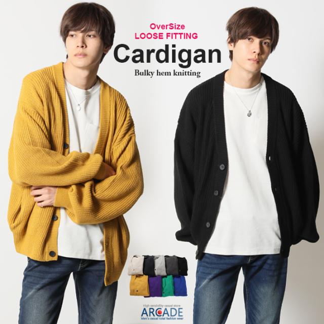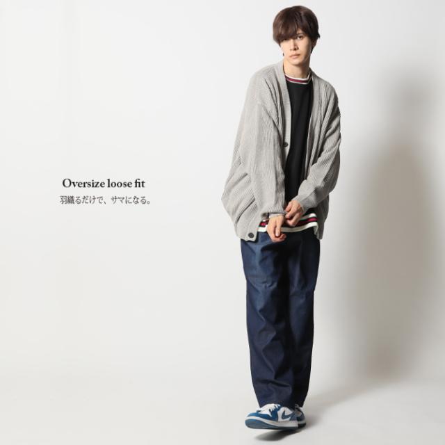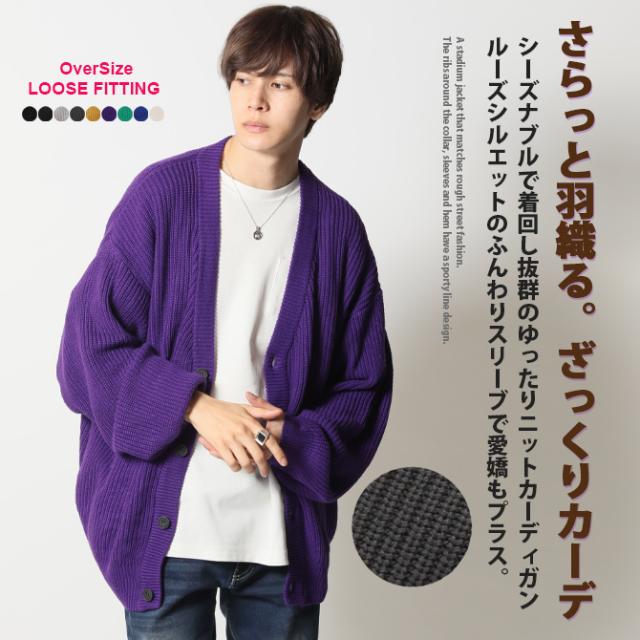 カーディガン メンズ オーバーサイズ 秋新作 ビッグカーディガン ローゲージニット ルーズカーディガン Vネック コットンカーディガン