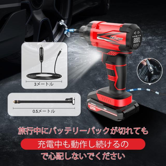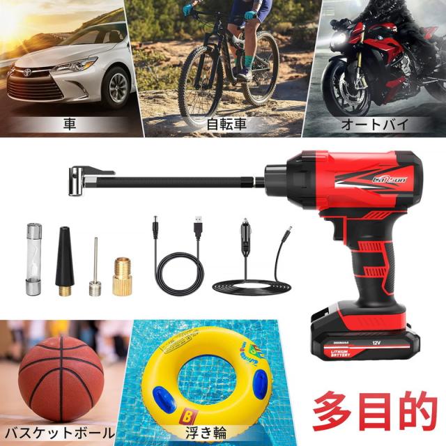 コードレス タイヤインフレーター 空気入れ エアコンプレッサー 12V コードレス カー 充電式 ポータブル
