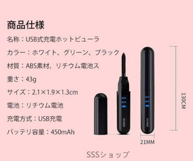 ホットビューラー ビューラー USB充電式 まつ毛カール 熱式 アイラッシュカーラー 二段階温度 ビューラー 火傷防止 携帯便利