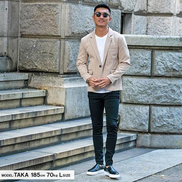 テーラードジャケット メンズ アウター 大人 ジャケット M L XL ストライプ 春 秋 冬 フォーマル カジュアル 結婚式 ビジネス ホワイト ネイビー ブラック 紺 黒 リモートワーク 在宅勤務 おしゃれ CavariA 20代 30代 40代 メンズファッション 即日発送 [CAST22-36]