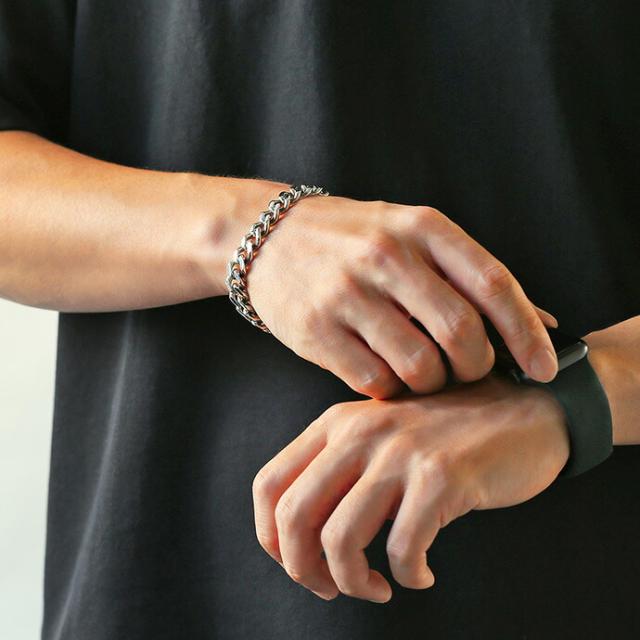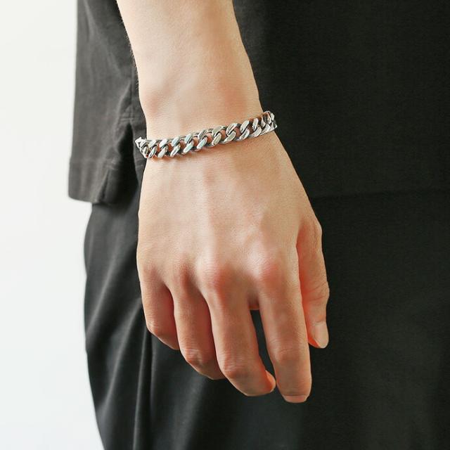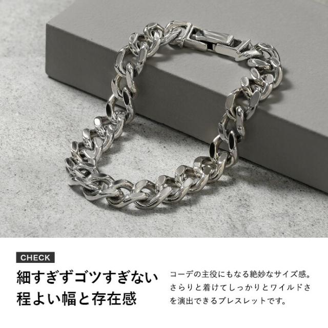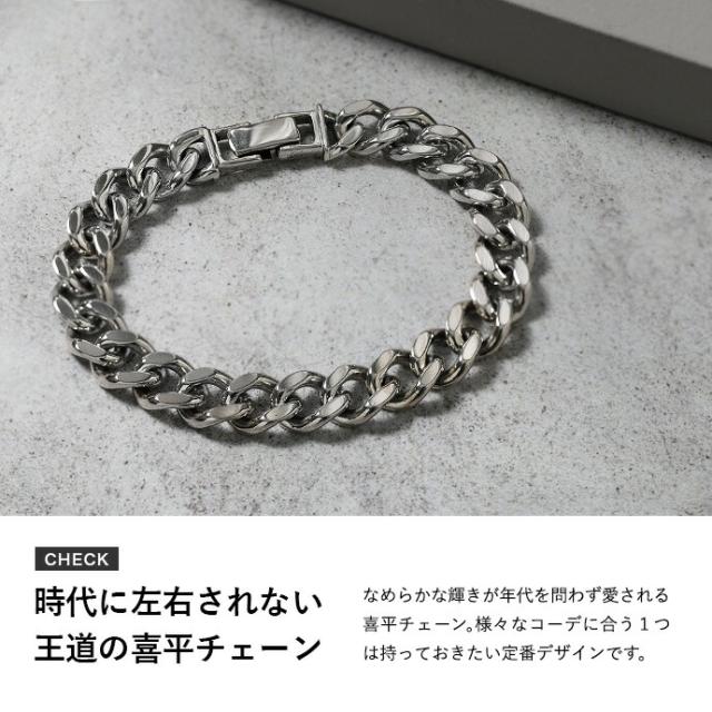 喜平チェーンブレスレット メンズ シルバー925 2面カット 太め 9.5mm幅 シンプル おしゃれ シルバーブレスレット シルバーアクセサリー メンズブレスレット 男性 bab-3613