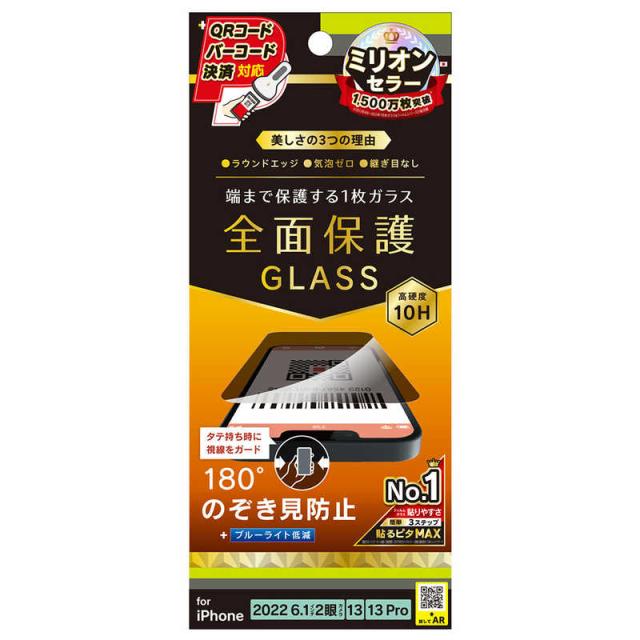 トリニティ iPhone 14/ 16e/ 13/ 13Pro 6.1インチ フィルム フルカバー 画面保護強化ガラス 180°のぞき見防止 TR-IP22M2-GL-LPVCC