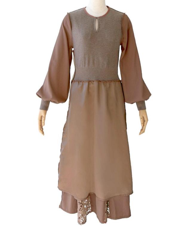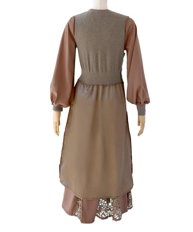 ニット素材と透け感のあるオーガンジーのドッキングワンピース。