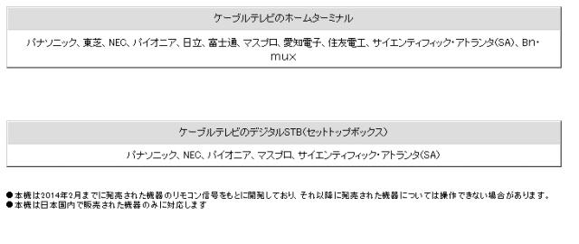 ※本機は2014年2月までに発売された機器のリモコン信号をもとに開発しており、それ以降に発売された機器については操作できない場合があります。