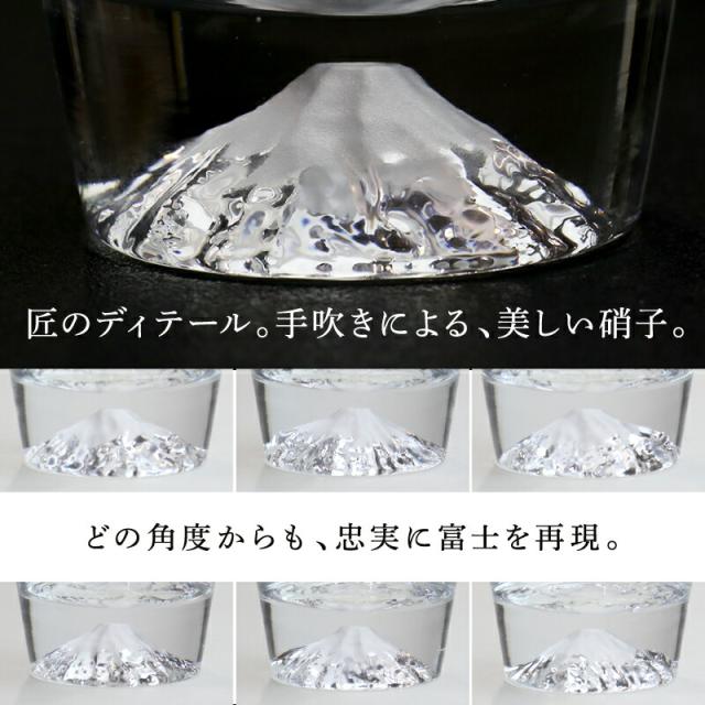 手の中に日本の絶景を。 晩酌の味わいを日本一にするロックグラスで 至福の時間をお楽しみいただけます。 - 一生モノのマイグラスにおすすめ。5つの理由 - 1. おみやげグランプリ受賞作品 国土交通省観光庁実施の「おみやげグランプリ2015」にて、 富士山グラスは美しいデザインが評価され、 グランプリ及び観光庁長官賞を受賞しました。 その後SNSやメディアでも話題となり注文が殺到。 国内だけにとどまらず海外からも購入される方が増えており、 今現在もなお高い人気を誇ります。 2. 富士山×桜のコラボレーション こちらは富士山グラスと粋な桜切子を コラボレーションさせた至高の一品。 まず一番に目を惹くのは ガラスの底面に閉じ込められた、日本一の霊峰・富士山の姿。 山肌の凹凸や山頂の雪化粧が精巧に表現されており、 手に取れば、思わず明かりに透かして見たくなるほど見事な造りをしています。 グラスの側面には柔らかに舞う桜のカットが施され、 粋と風流を感じさせるデザインとなっております。 お酒を注げば、雄大な富士山と繊細な桜の花びらが浮かび上がり、 いつもの晩酌が至福のひとときに。 3. 江戸から伝わる職人技 富士山グラスはひとつひとつが全て手づくりで製造されています。 グラスの底に入った富士山は江戸硝子職人の技が光る手吹きによるもの。 細かな気泡は手づくりの証です。 飲み口は、極限まで薄く品のある仕上がりに。 お酒の味はもちろん、香りや舌触りも最大限に引き立てます。 東京・江戸川区にある老舗 ブランド 「田島硝子」では、 江戸時代から受け継がれる伝統工芸品「江戸硝子」を製造し続けてきました。 「この国の、息吹であり続ける。」 確かな技を持つ職人たちは、 伝統の火を絶やすことなく未来へと繋ぐため、 昔ながらの技術や文化を大切に継承しながらも、 新たな進化と発展を目指しガラス製品を手がけています。 [ 国・東京都の伝統工芸品 江戸硝子とは ] 「江戸硝子」とは、江戸時代に生まれた硝子製法を受け継ぎ、手づくりで製造されたガラス製品です。 18世紀序盤に鏡や眼鏡等を製造したのがはじまりとされており、 明治初期には欧州の技術の導入によって多様なニーズへの対応が可能となり、東京の地場産業として発展しました。 江戸硝子は機械による大量生産品とは異なり、すべての製品がオリジナルの1点もので、 手づくりだからこそ出せる深みや味わい、デザイン性の高さが特徴です。 1,400℃ほどの高温で溶かされたガラスを鉄製の棹(さお)で巻き取った後、 「吹き」「押し」「延ばし」などの技術を用いてさまざまな器を形づくっていきます。 「江戸硝子」は2002年(平成14年)に東京都伝統工芸品、2014年(平成26年)には経産省より国の伝統的工芸品に指定されました。 4. 注ぐ飲み物によって変わる表情 注ぐ飲み物のお色が富士山の山肌に反射。 様々な表情の富士山をお楽しみいただけます。 「今日はどんなお酒を注いでみようかな…」 ビールを注げば黄金色、 ウイスキー、ブランデーなら琥珀色の富士山に。 時にはカラフルなカクテルでも… 毎日の晩酌は日々の疲れを癒すリラックスタイム。 1日の疲れをリセットする大切な時間をより一層特別なものに。 自分だけの「夜の富士山」。大人の時間をお楽しみください。 5. 名入れ彫刻 美しい世界遺産 富士山が魅力のグラスに 当店の職人←専属スタッフ?がお名前を彫刻します。 「お名前入り」は特別なギフトにピッタリ。 目にするたび、もらった時の感動がよみがえります。 〔 ラッピング 〕 グラスは、桜の切子にちなんで桜柄の風呂敷に包まれています。 専用の木箱に入れてお届けいたしますので、 大切な方の誕生日や記念日など、慶事の贈り物として大変喜ばれる一品です。 〔 当店取扱い富士山グラスは【 正規品 】です。〕 田島硝子 株式会社様より直接仕入れ。 木箱・「金シール」・「品番・品名シール」・しおり付属 安心してご購入いただけます。 〔 こんなシーンで選ばれています 〕 還暦 古希 喜寿 傘寿 米寿 卒寿 白寿 百寿 の 長寿のお祝い として。 50歳 60歳 70歳 80歳 など 人生の節目 の記念日 に。 40代 50代 60代 70代 80代 晩酌を楽しむ 男性 お父さん おじいちゃん に。 お酒好きな 父親 母親 へ ペア ギフト としてセットで 父の日 母の日 贈り物に。 ウイスキー好き ブランデー好き の方への マイグラス と |