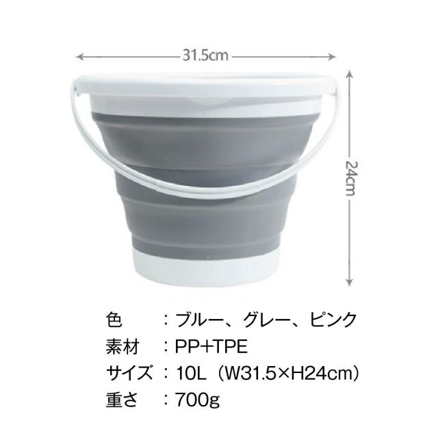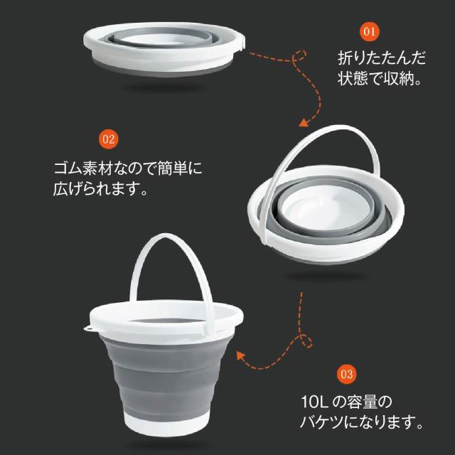 折りたたみ式 バケツ 10L ソフトバケツ コンパクト収納 畳める バケツ シリコン製 収納 キャンプ アウトドア 掃除道具 釣り 防災グッズ ori-bake02