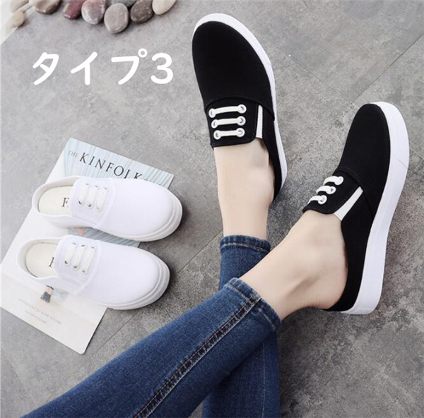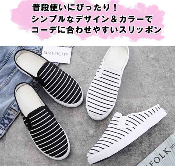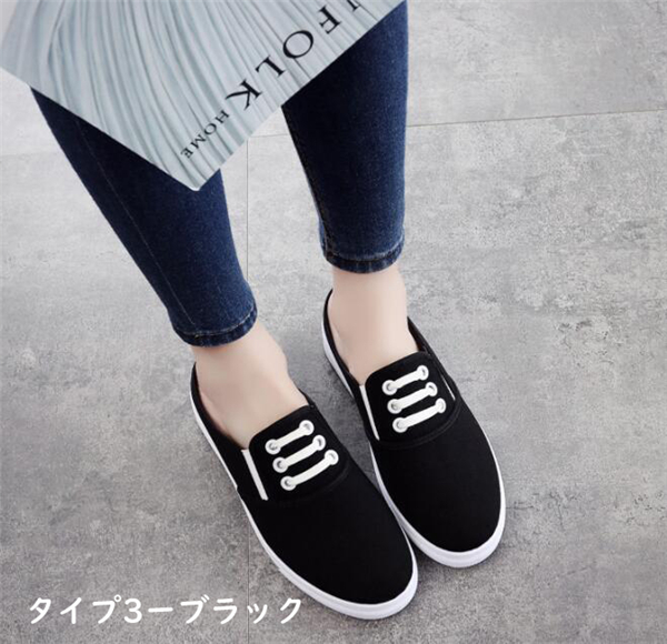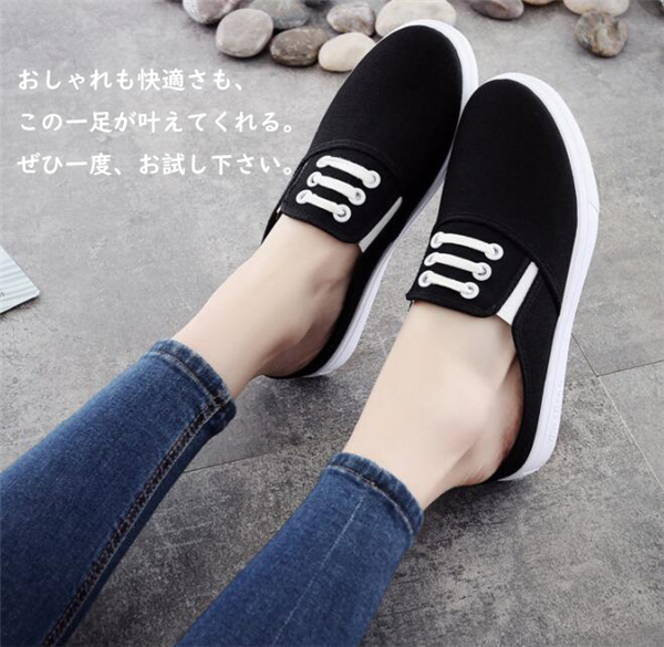 スニーカー レディース サンダル かかとなし スリッポン レディース メンズ シューズ キャンバス素材 紐無し 無地 シンプル ぺたんこ カジュアル 靴 スリッポン パンプス キャンバス ブラック ホワイト 黒 白