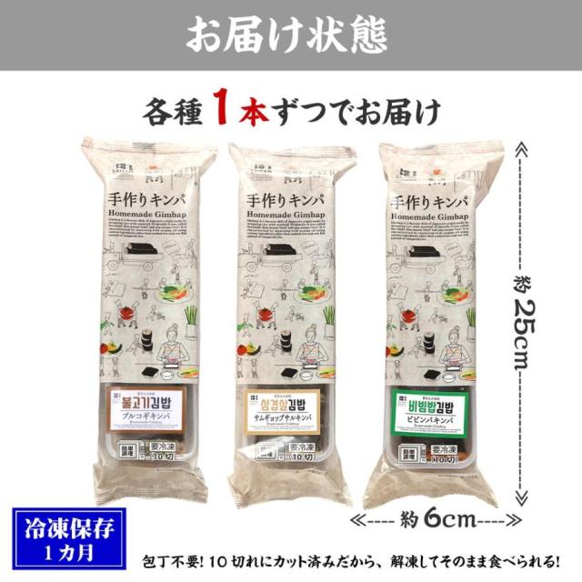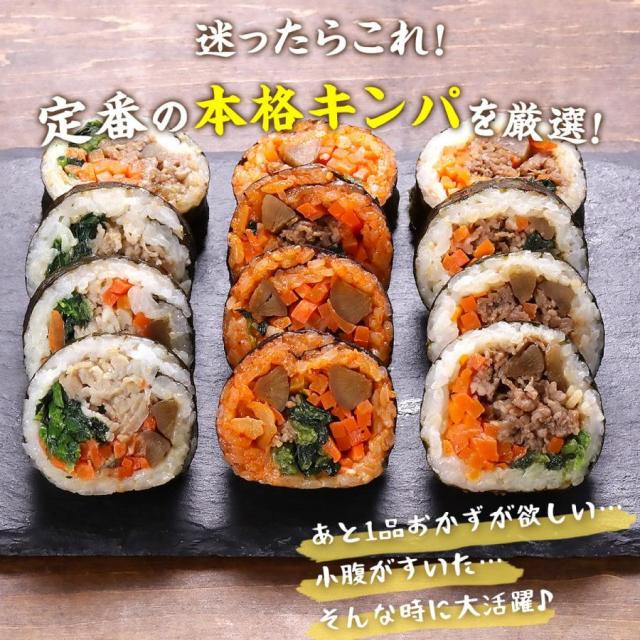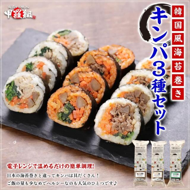 韓国の味をとても簡単に楽しめる当店のキンパ3種セットをぜひご賞味ください♪