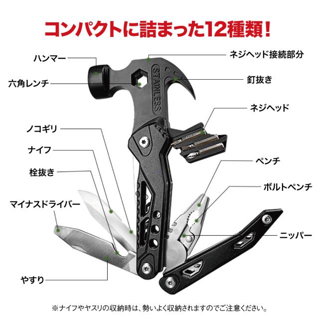 マルチツール アウトドア 12種類 工具 ナイフ キャンプ テント キャンプ用品 ハンマー ペンチ ドライバー 便利グッズ 防災グッズ m-tool02 agesugi_ssp