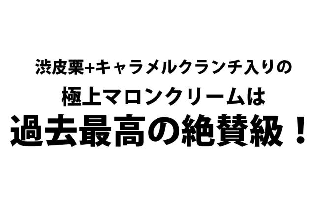 渋皮栗+キャラメルクランチ入りの極上マロンクリームは過去最高の絶賛級です。