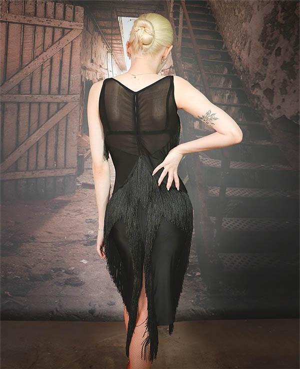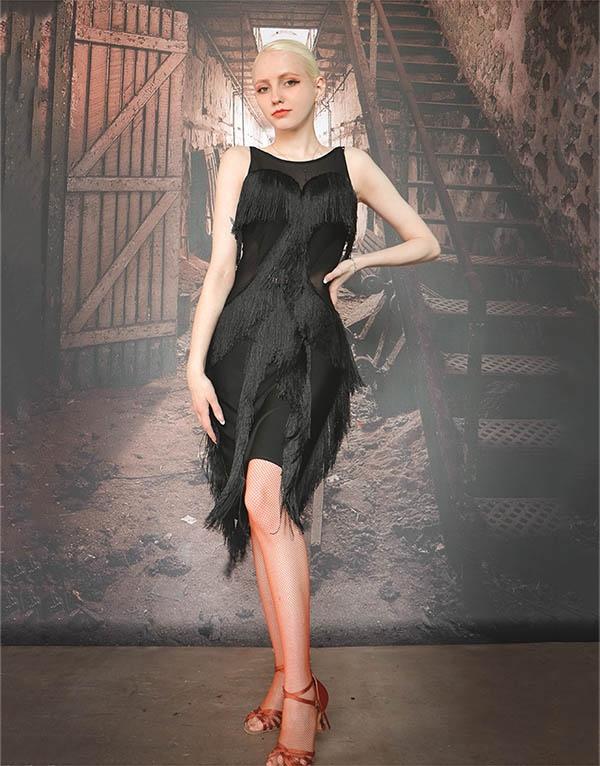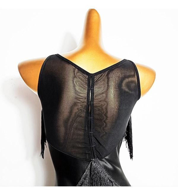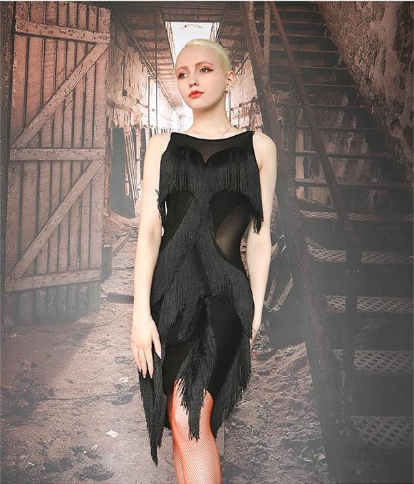 社交ダンスドレス ドレス 社交ダンス ダンスウェア ダンス衣装 ブラック 袖なし ノースリーブ 透け感 フリンジ スリット ラテンドレス