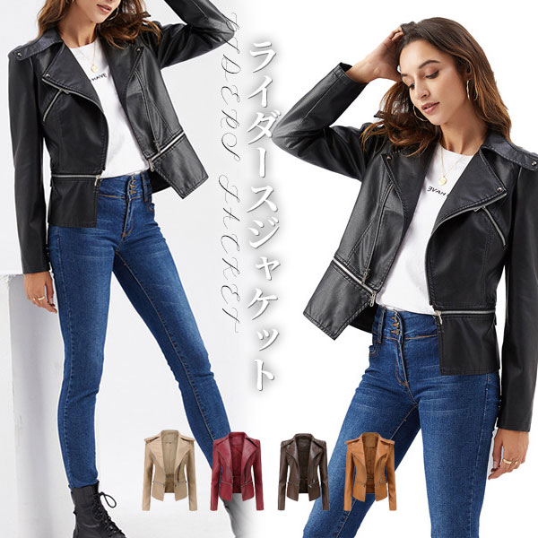 ライダース レディース ジャケット デッキジャケット PUレザー ライダースジャケット アウター レザージャケット ブルゾン レザージャケット レザー ライダース バイカージャケット 革ジャン ライトアウター 軽アウター レディースファッション PU 50代 40代 30代 20代 アウター ジャケット 羽織り