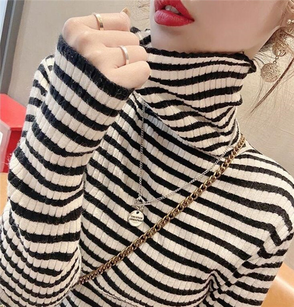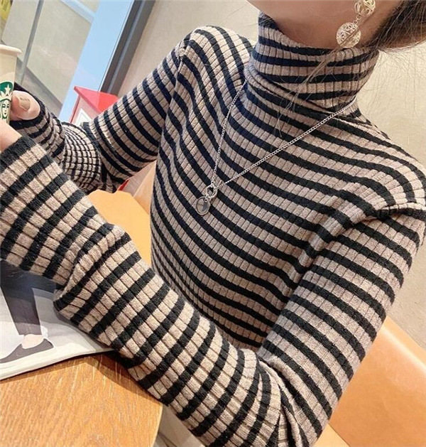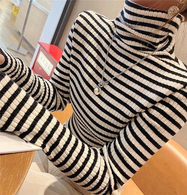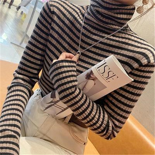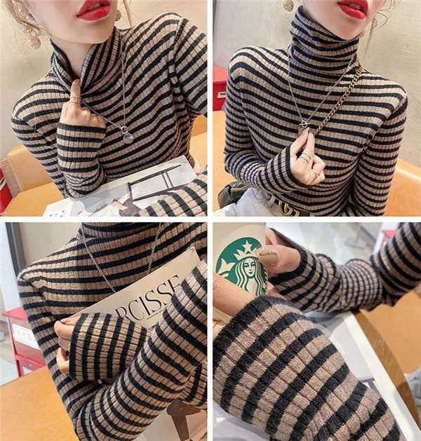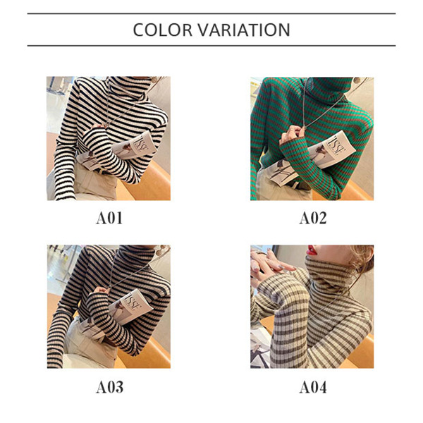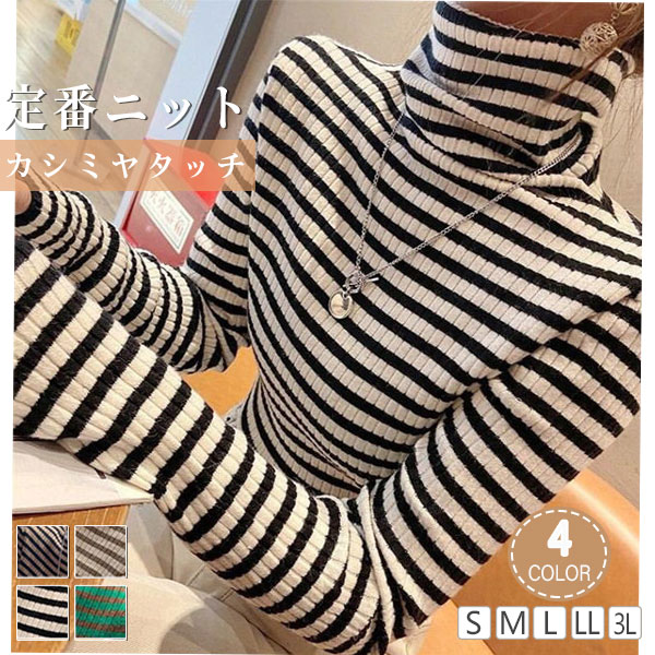 スマプレ超祭り ハイネックニットセーター レディース ボーダー シンプル カジュアル 着回し トップス オフィス 秋冬 通勤通学 OL きれいめ 韓国風 ファッション