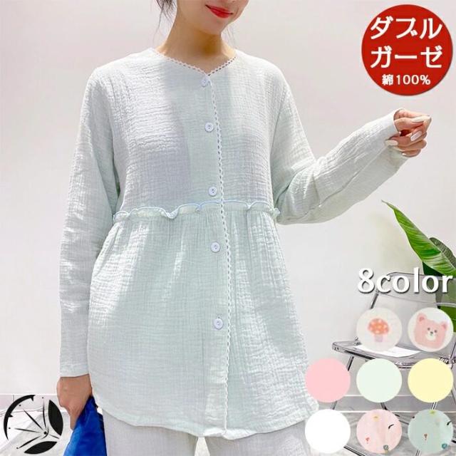 ルームウェア パジャマ レディース 二重ガーゼ 綿100% 前開き 長袖 長ズボン 春 夏 秋 ダブルガーゼ ガーゼパジャマ シニア 冷え性対策 冷房 授乳 母の日 敏感肌 高齢者 ふんわり 柔らかい ナイトウェア 上下セット 部屋着