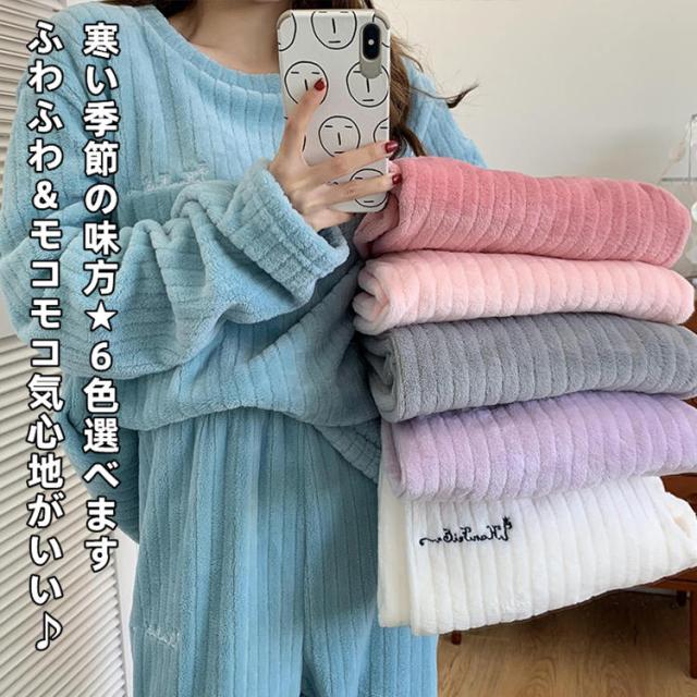 送料無料 モコモコ ふわふわ 軽く暖かい パジャマ 上下セット 可愛い 着る毛布 無地 長袖 厚手 裏起毛 部屋着 ルームウェア ナイトウェア プレゼント ギフト 防寒 冬用 秋冬 レディース お得