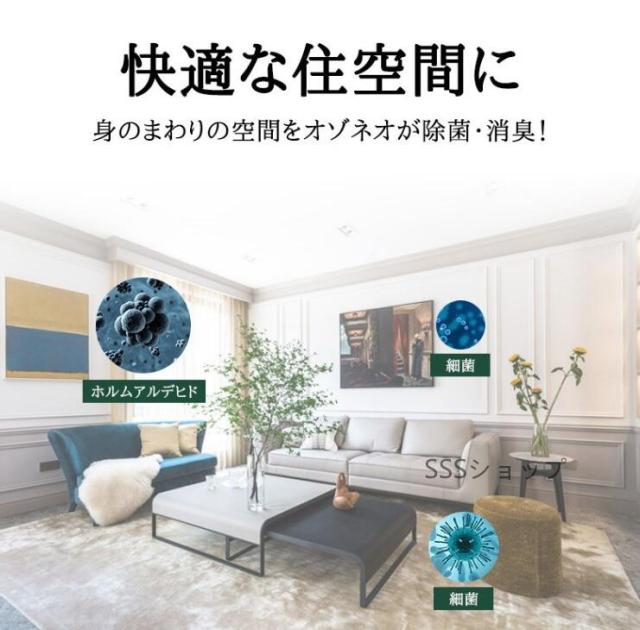 【低濃度オゾン発生機・安全安心】場所を取らず広範囲 (目安広さ2~21畳)に消臭能力を発揮する! 一般家庭用として、オゾン発生量は〜100mg/hまでに抑えられています。さらにオゾンは自然に分解され酸素に戻り完全に無害化されるので、ペットや小さなお子様がいるご家庭でも安心してご使用いただけます。