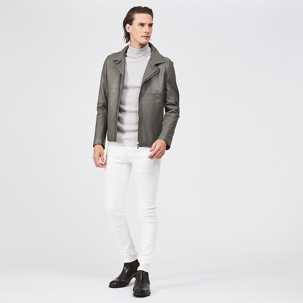自然な光沢感と軽く柔らかな風合いが特徴のターキッシュラムレザーを使用。着ていく度に皮革本来のシボ感やヨレ感といった独特な表情が生み出される5351POUR LES HOMMESのオリジナルレザーとなります。