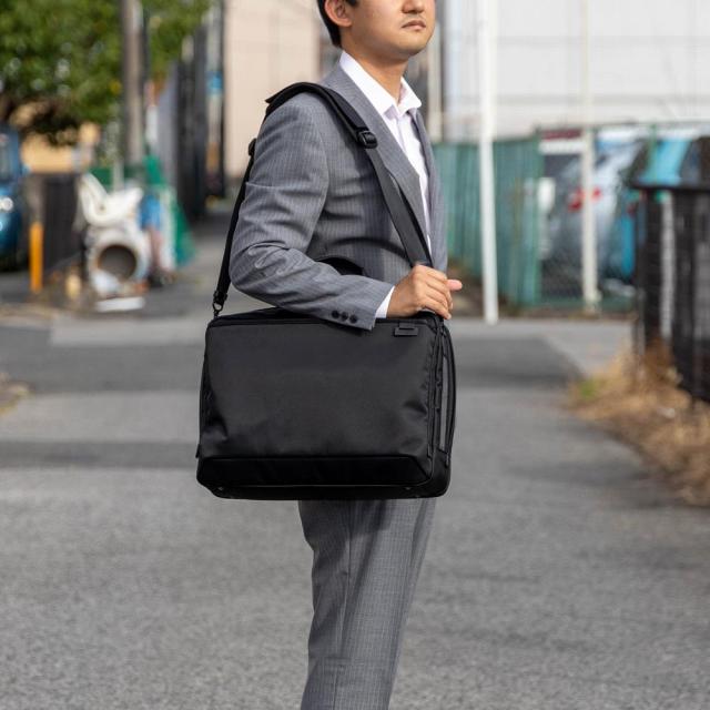 本体には、高い撥水機能を備えた上質感のあるナイロンツイル素材を、ハンドル部とファスナー引手には手馴染みのよい牛革を採用。 シンプルなデザインは、必要な機能を残しつつ無駄を省くことで軽量な設計に仕上げています。