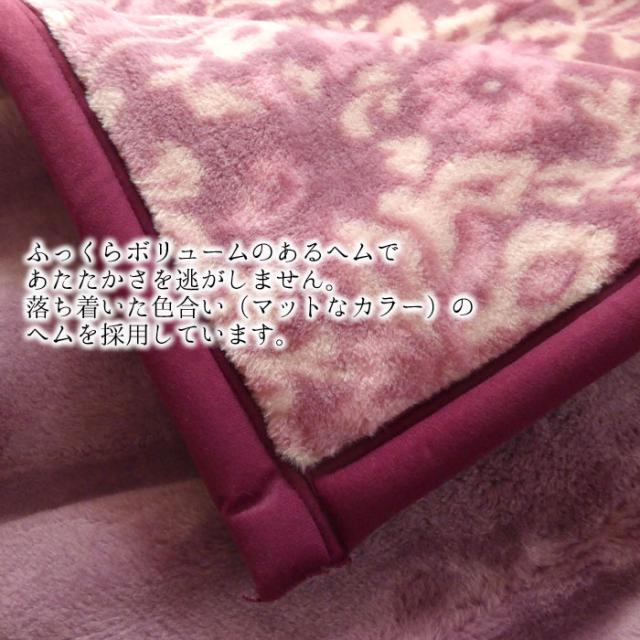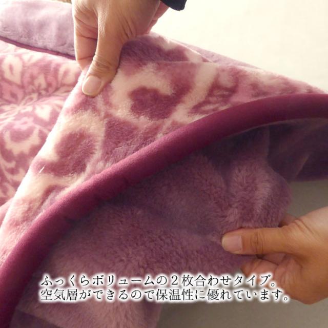 毛布 シングル 2枚合わせ マイヤー毛布 厚手 軽量 衿付き毛布 かさ高 静電気防止 日本製 泉大津 ロマンス小杉 あったか 花柄 エレガント 肌触りなめらか ふんわり 8530-3100