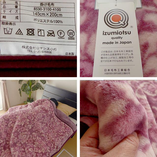 国産毛布の90%以上を生産する大阪泉大津で作られました。
