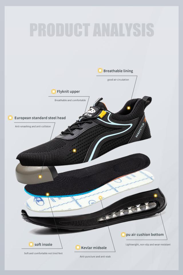 安全靴 おしゃれ スニーカー メンズ レディース 作業靴 軽い クッション 厚底 疲れにくい 軽量 黒 鋼先芯入り 登山靴 あんぜん靴 踏み抜き防止