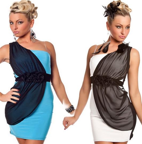 ミニドレス キャバドレス キャバワンピ オシャレなコサージュ装飾デザインストレッチミニドレス セクシーワンショルダーミニワンピ ドレス ストレッチドレス
