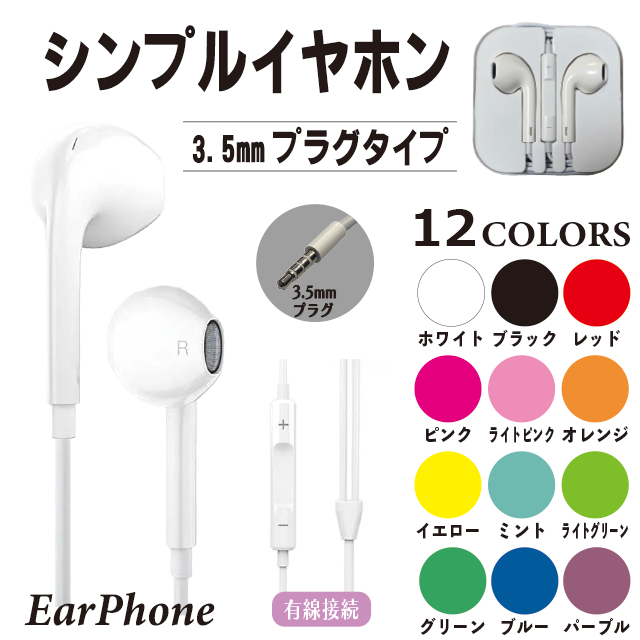 【 3つ購入で+1つプレゼント! 】 シンプル イヤホン 有線 3.5mm プラグ ベーシック イヤフォン 【 商品レビュー記入でポイント10%還元 】