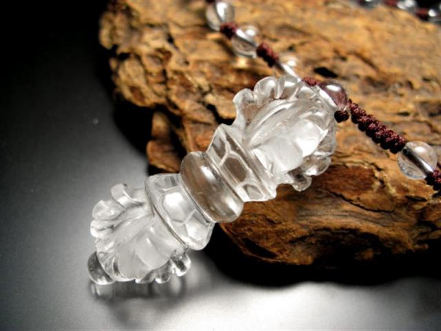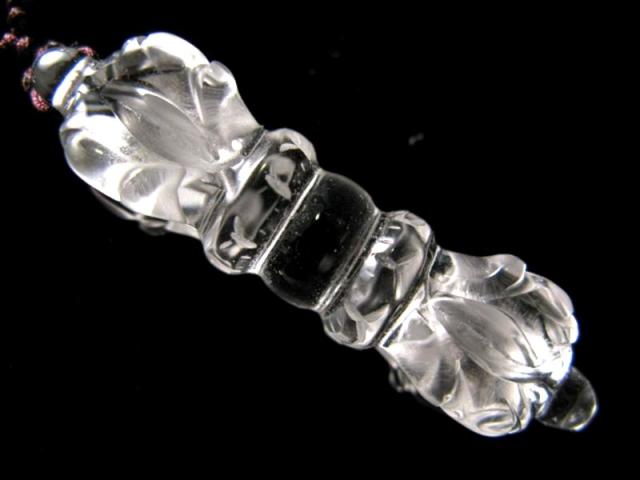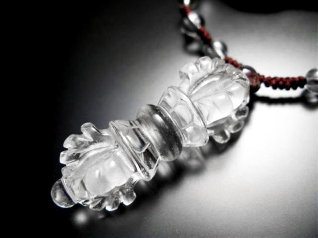 手彫り法器ネックレス 天然水晶 クリスタル五鈷杵 ヴァジュラ 石サイズ約40ミリ-42ミリ pe-p
