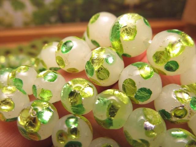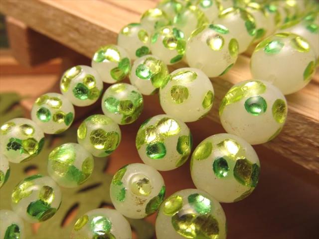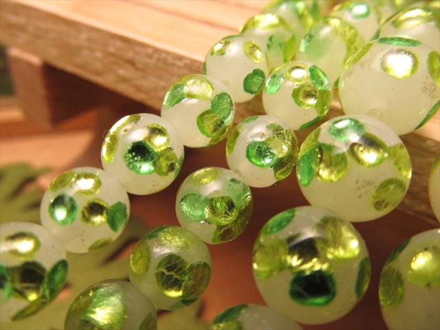 トンボ玉 とんぼ玉 グリーンタイプK ラウンド型 12mm 一連 約34cm 約30珠 昔ながらの人工ビーズ 激安 ホタルガラス ビーズ rn-p パワーストーン 天然石