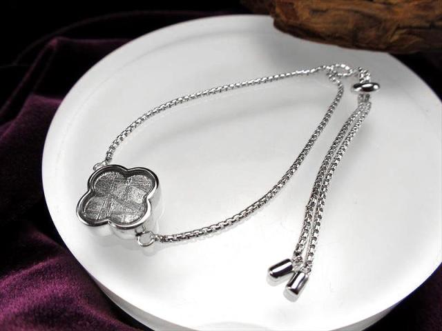 激安宣言 フラワーモチーフ ギベオンブレスレット シルバーカラー モチーフ最大幅約14mm メテオライト 隕石 アジャスターチェーンタイプ ナミビア・ハルダブ州産 geki-met2F10