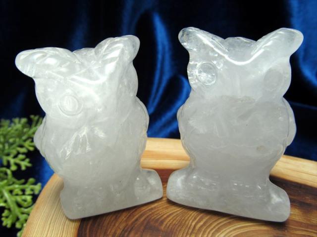水晶 フクロウ彫り 置物 重さ約45-60g 1個売り ふくろう 不苦労 幸運を招く聖なる石 縁起物