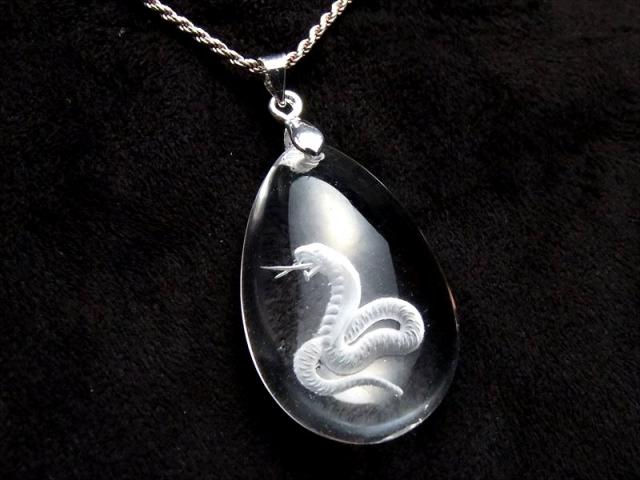 白ヘビ 蛇彫り 天然水晶 ペンダントトップ 縦約32ミリ×幅約22ミリ 1個売り 最高の運気アップ 白蛇 クリスタルトップ へび ヘビ クリスタルトップ