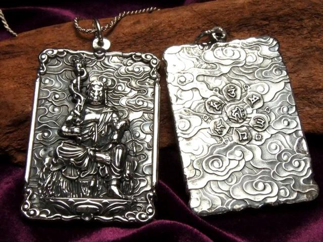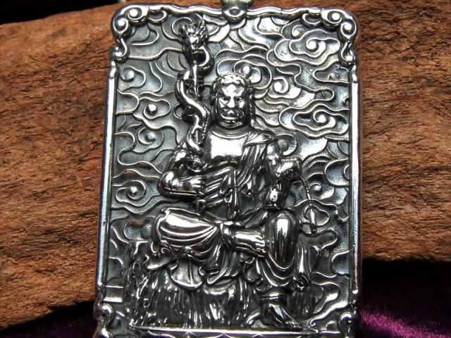 不動明王 高品質シルバー 両面彫刻 不動明王像 彫刻ペンダントトップ 縦約50mm1個売り キーホルダーにも使える大き目サイズ Silver925