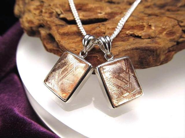激安宣言 メテオライト隕石スクエアカット型ギベオンペンダントトップ ピンクゴールドカラー 最大幅約14mm 1個売り ナミビア・ハルダブ州産 geki-met2F23