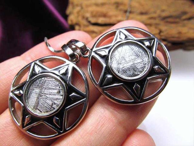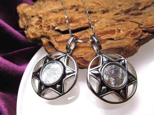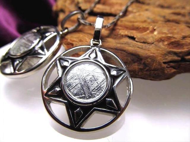 激安宣言 ギベオン 六芒星リング ペンダントトップ 直径約23mm 1個売り STAINLESS STEEL メテオライト 隕石 ナミビア・ハルダブ州産 geki-met1D15