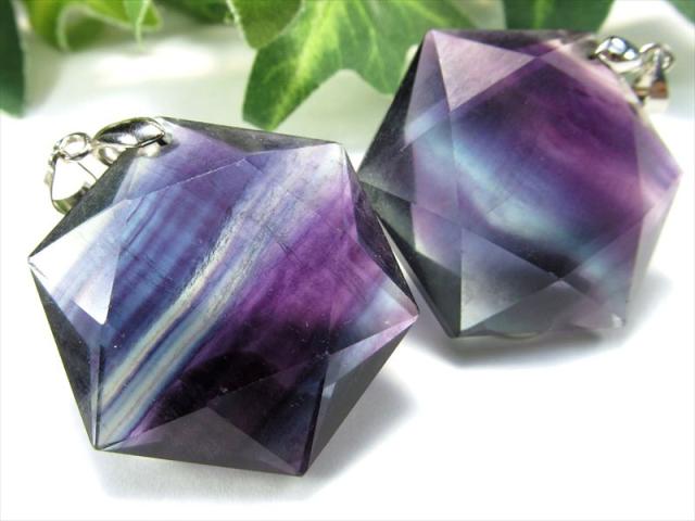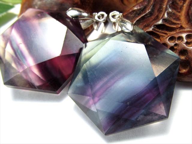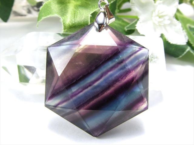 マルチカラーフローライト 蛍石 六芒星カットペンダントトップ 1個売り 石サイズ縦約31mm前後 Silver925 無邪気な発想や思考力を高めてくれる石 アメリカ産