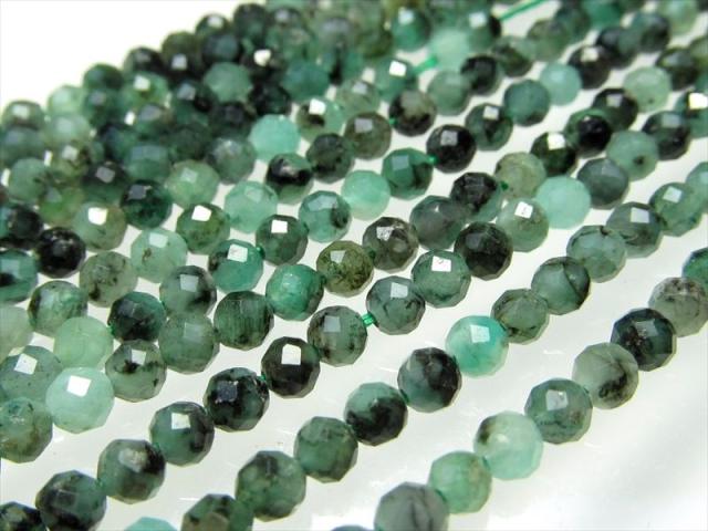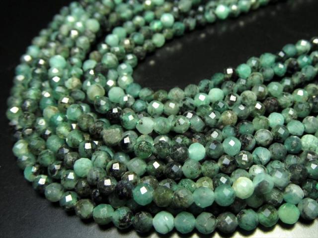 極小 約3mm エメラルド ミラーカット 一連 約38-40cm 高品質入荷 極上 天然石 ビーズ パワーストーン ザンビア産 パワーストーン 天然石