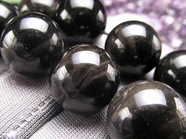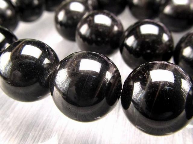 激安宣言 4A 約14mm珠 ブラックタイガーアイ 黒虎目石 一連 約37-39cm 漆黒シャトヤンシー効果 南アフリカ産 geki パワーストーン 天然石