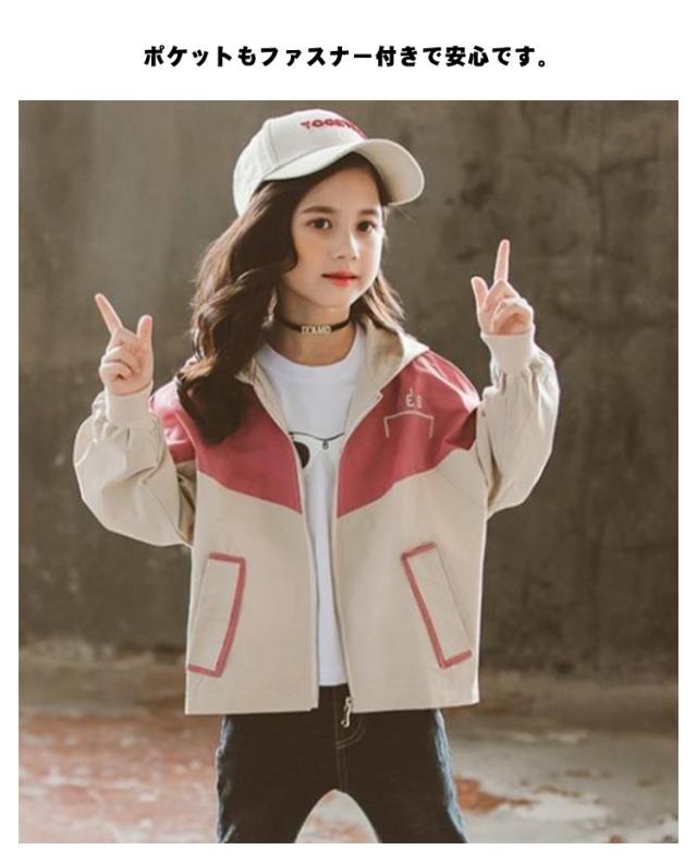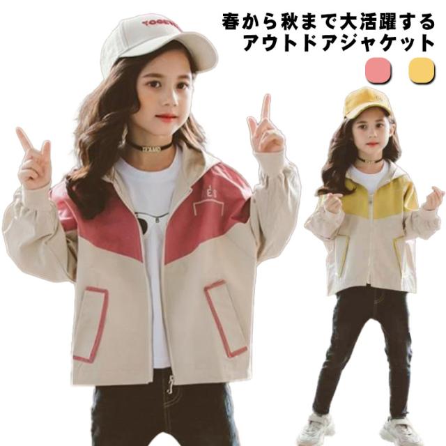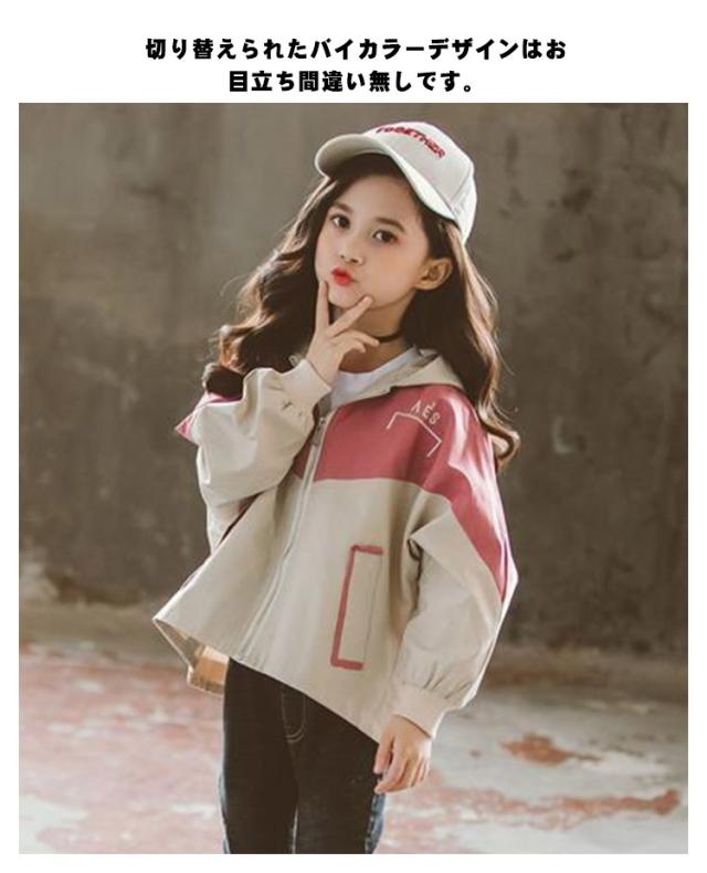 マウンテンパーカー キッズ ウィンドブレーカー 子供服 女の子 アウター フード付き ジャケット ベビー服 スタジャン 春物 防風 春コート 薄手 ジップアップ トップス 切り替え お洒落 ブルゾン ガールズ ジャンパー カジュアル 運動着 90 100 110 120 130 送料無料
