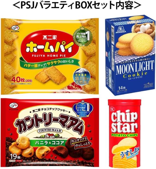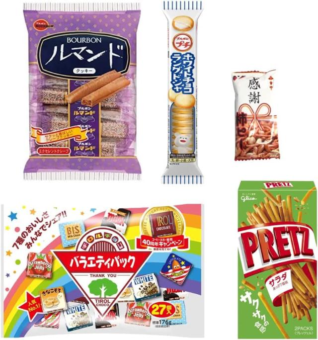 ポテチなどのスナック菓子からクッキー、チョコレートまで満遍なく楽しめるお菓子の詰め合わせです。