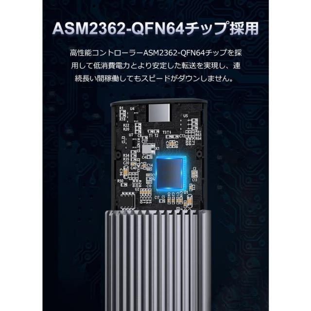 【ASM2362-QFN64高性能チップ】高性能コントローラーASM2362-QFN64チップを使用して低消費電力とより安定した伝送を実現し、連続長い間稼働してもスピードがダウンしません。UASPとTRIM機能も対応します。