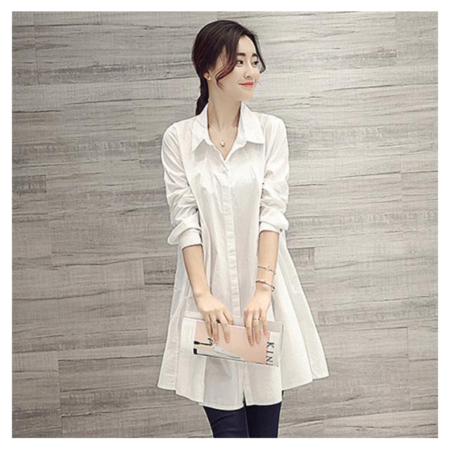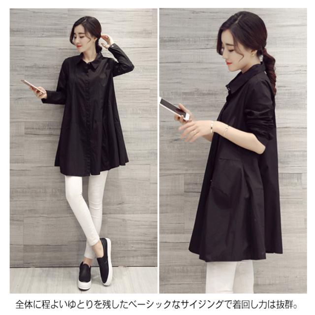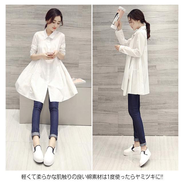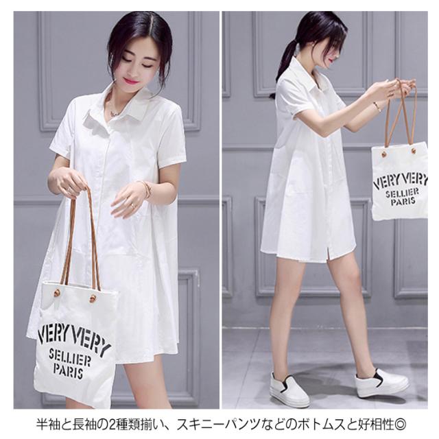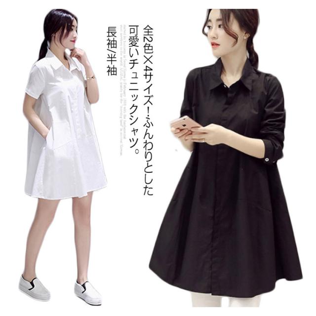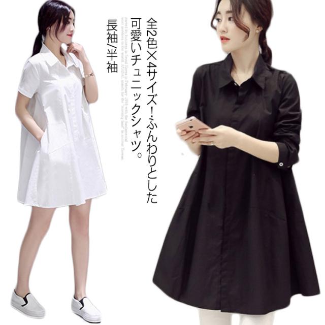 送料無料 長袖&半袖選べる!チュニック チュニックシャツ レディース シャツ ブラウス 白シャツ ロングシャツ Aライン ゆったり 可愛い 白 ホワイト 春 夏 秋 無地