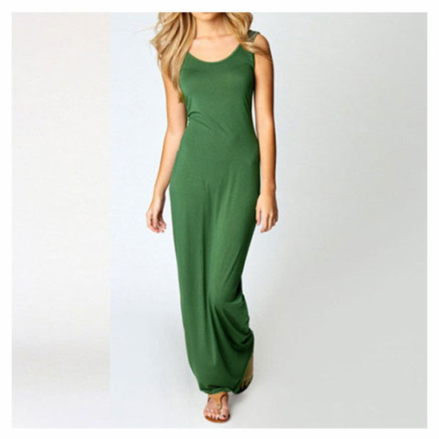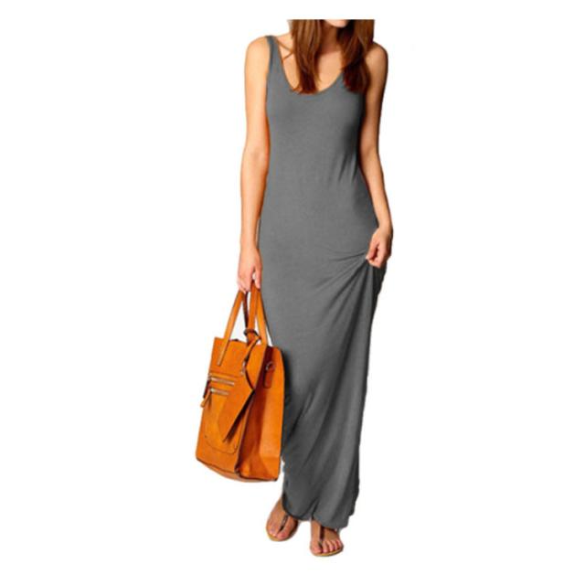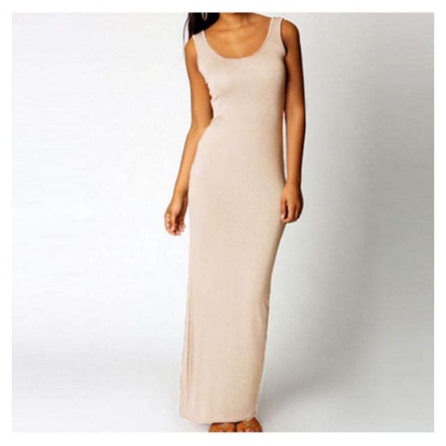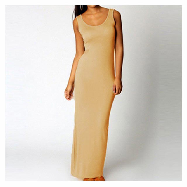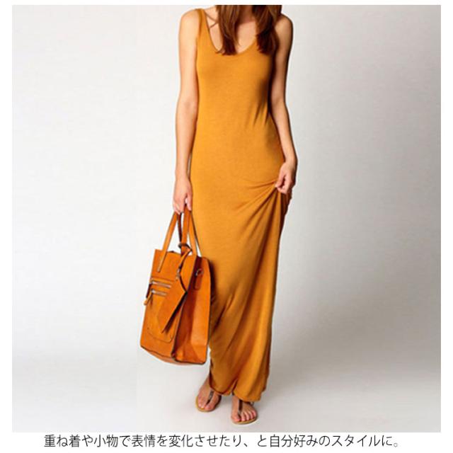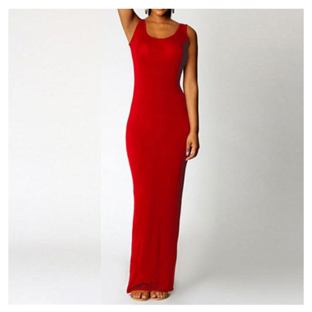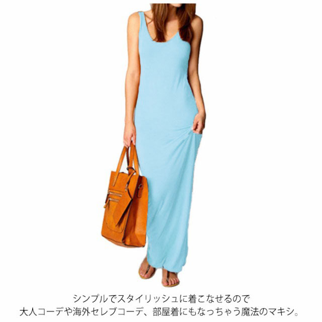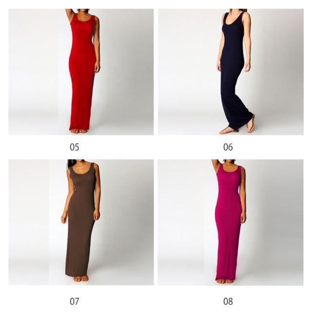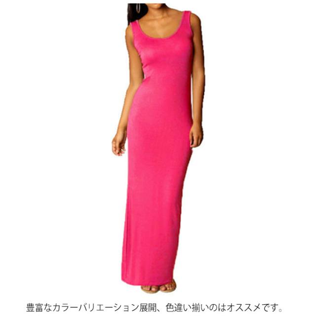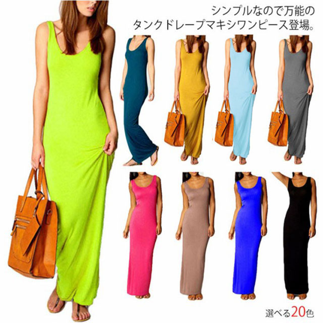 送料無料 全20色×5サイズ!マキシワンピース タンクワンピース マキシ丈 ワンピース タイト Uネック セクシー 春 夏 秋