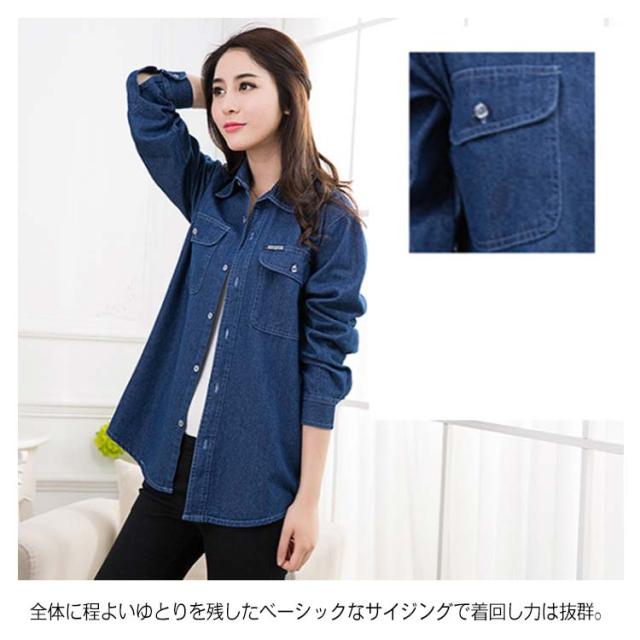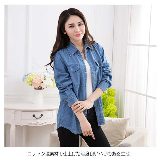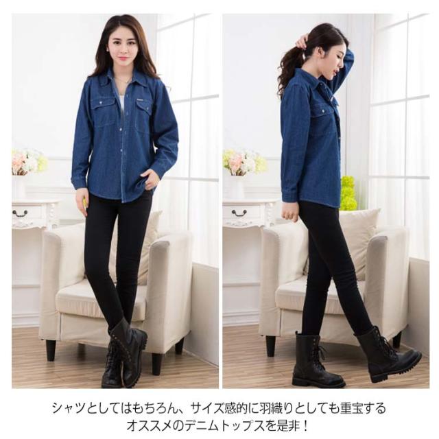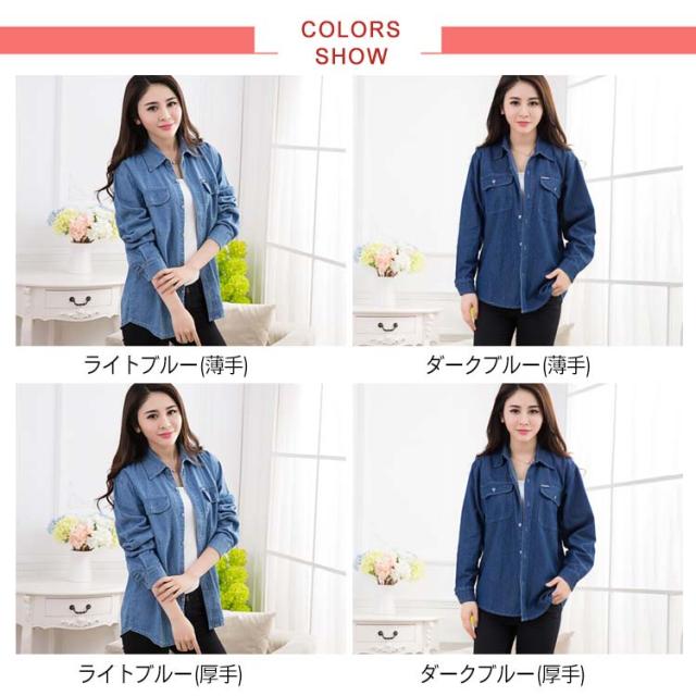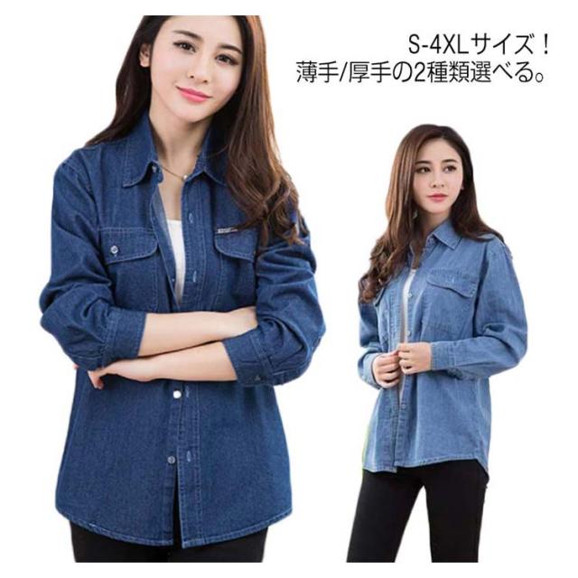 《送料無料》S-4XLサイズ!薄手/厚手 デニムシャツ レディース デニム カジュアルシャツ シャツ トップス 長袖