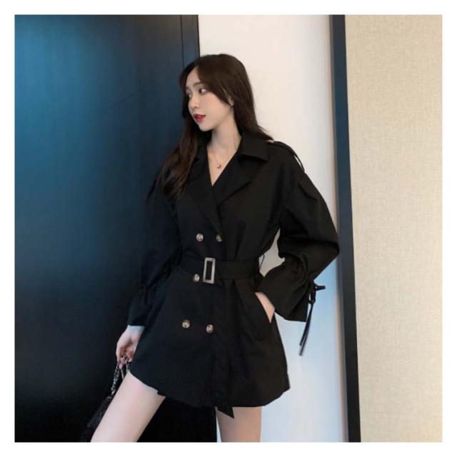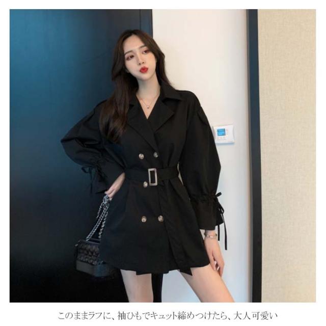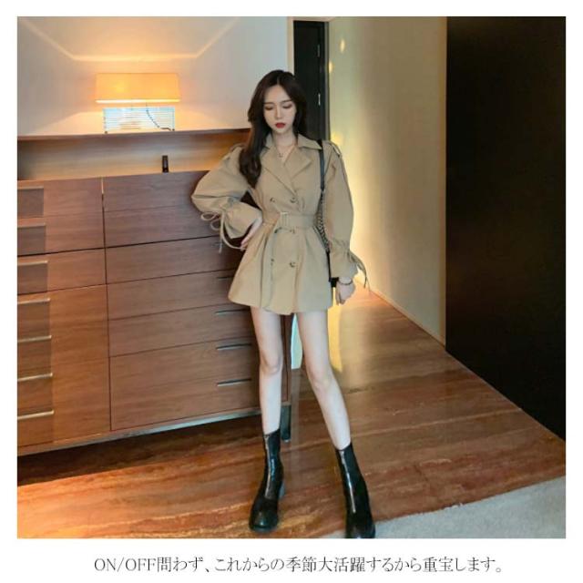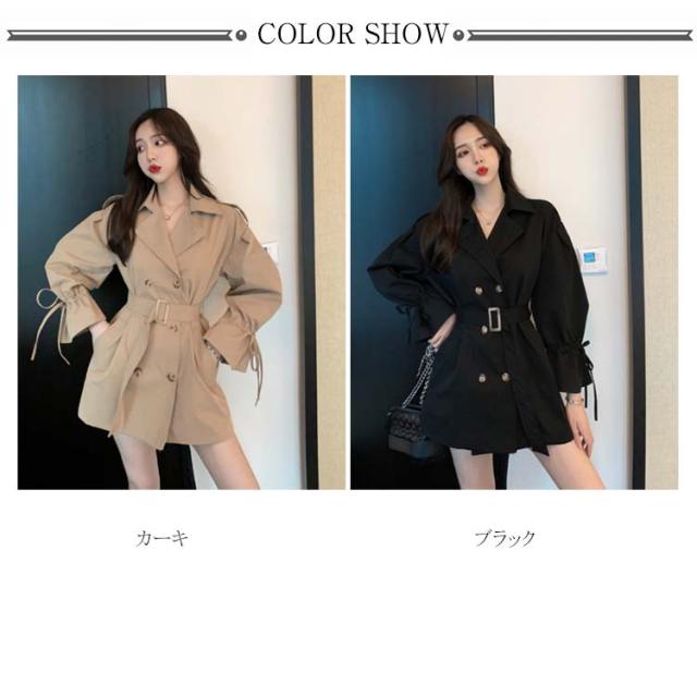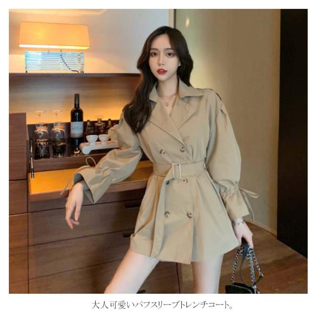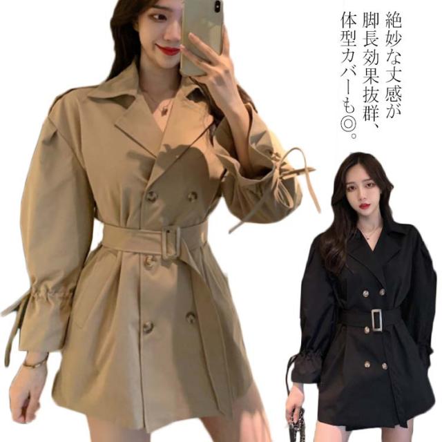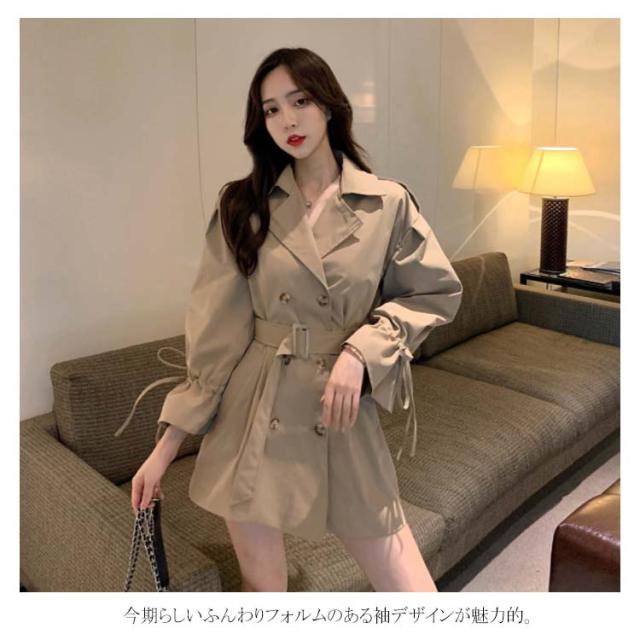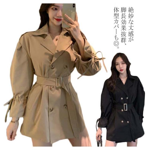 トレンチコート アウター レディース ミディアム丈 パフスリーブ 可愛い おしゃれ スプリングコート コート 羽織り ベルト付き ドロップショルダー 上品 オシャレ ライトアウター カジュアル 秋物 冬物 通勤 お出かけ お呼ばれ