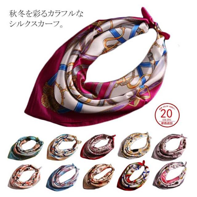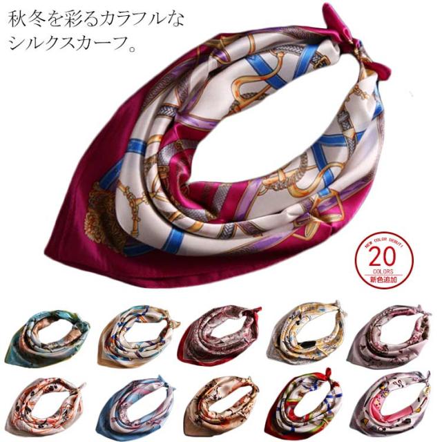 送料無料 シルクスカーフ シルク100% シルク スカーフ 総柄 カラフル レディース おしゃれ スカーフシルク 誕生日 母 プレゼント ギフト ベルト ヘアバンド リボン 持ち手 おしゃれ レトロ クラシカル