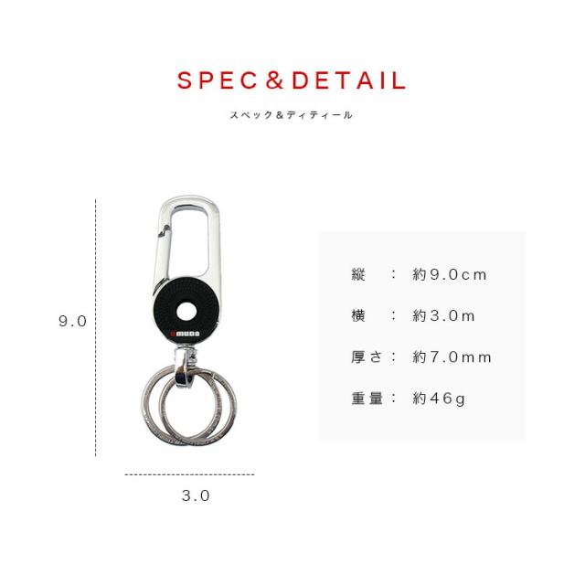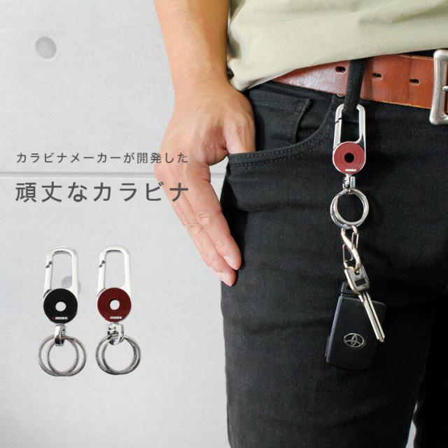 シンプルなデザインのカラビナキーホルダーです。ブラックとダークブラウンのカラー部分はマットな質感でアクセントになっています。単体で使用するのはもちろんウォレットチェーンなどのレザーアイテムと組み合わせても使えます。