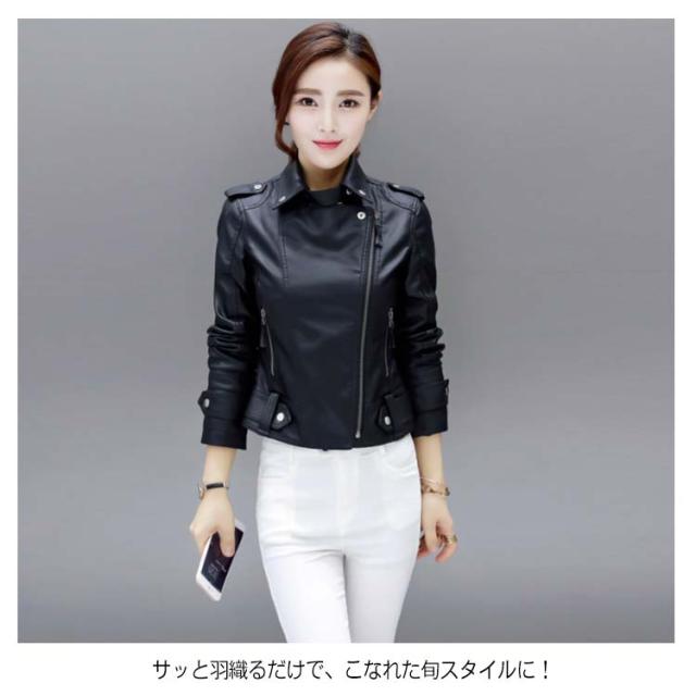 《中綿なし/中綿入り S-3XLサイズ!》ライダースジャケット レディース ライダース ジャケット レザージャケット PUレザー ショート丈 アウター 春 秋 おしゃれ 黒