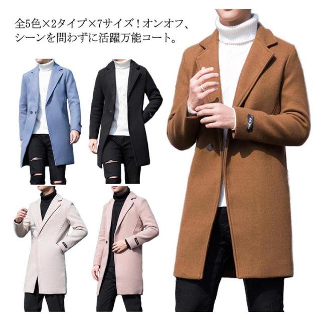 全5色×2タイプ×7サイズ!メルトンコート メンズ トレンチコート ロングコート 紳士服 ビジネスコート ロング ミドル アウター コート 無地 秋服 冬服 秋冬 大きサイズ